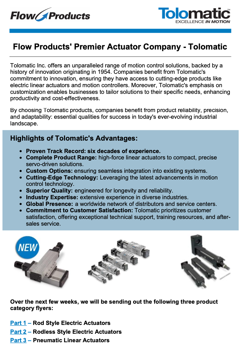 - Commitment to Customer Satisfaction: Tolomatic prioritizes customer satisfaction, offering exceptional technical support, training resources, and after sales service